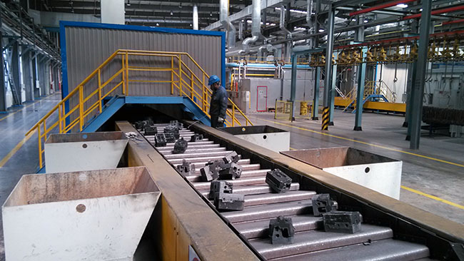 2、鑄件、塊狀等專用鱗板輸送機(jī):是我公司針對(duì)輸送大塊和尖銳的物料,開發(fā)設(shè)計(jì)的。該系列輸送機(jī)具有結(jié)構(gòu)簡單、運(yùn)行可靠、使用壽命長,運(yùn)送單個(gè)物料(件)的重量可達(dá)70-120kg,輸送機(jī)長度可達(dá)40-80米且允許25°傾角輸送。