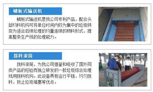 送料機構(gòu)作為生活垃圾處理線的第一道工序在整條處理線中具有至關(guān)重要的作用,它決定了整條處理線的處理速度和處理量。為了保證生活垃圾處理線的平穩(wěn)可靠運行,為這一環(huán)節(jié),我們設(shè)計了特殊送料機構(gòu)——鱗板式輸送機和撥料滾筒。