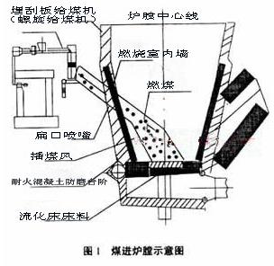 由于噴嘴裝在進(jìn)煤口的底部,播煤風(fēng)就沿著進(jìn)煤口底部噴入爐膛燃燒室。這樣播煤風(fēng)對(duì)燃煤起到“支撐”作用,燃煤是懸浮在播煤風(fēng)上面而被“托”進(jìn)燃燒室的,因而它輕松越過(guò)床料的“死區(qū)”而被拋入流化床床面內(nèi)。同時(shí)播煤風(fēng)風(fēng)速很高,對(duì)燃煤又起了均勻撒播的作用,使燃煤與床料充分混和,有利于其充分燃燒,大大提高了鍋爐運(yùn)行的經(jīng)濟(jì)性。